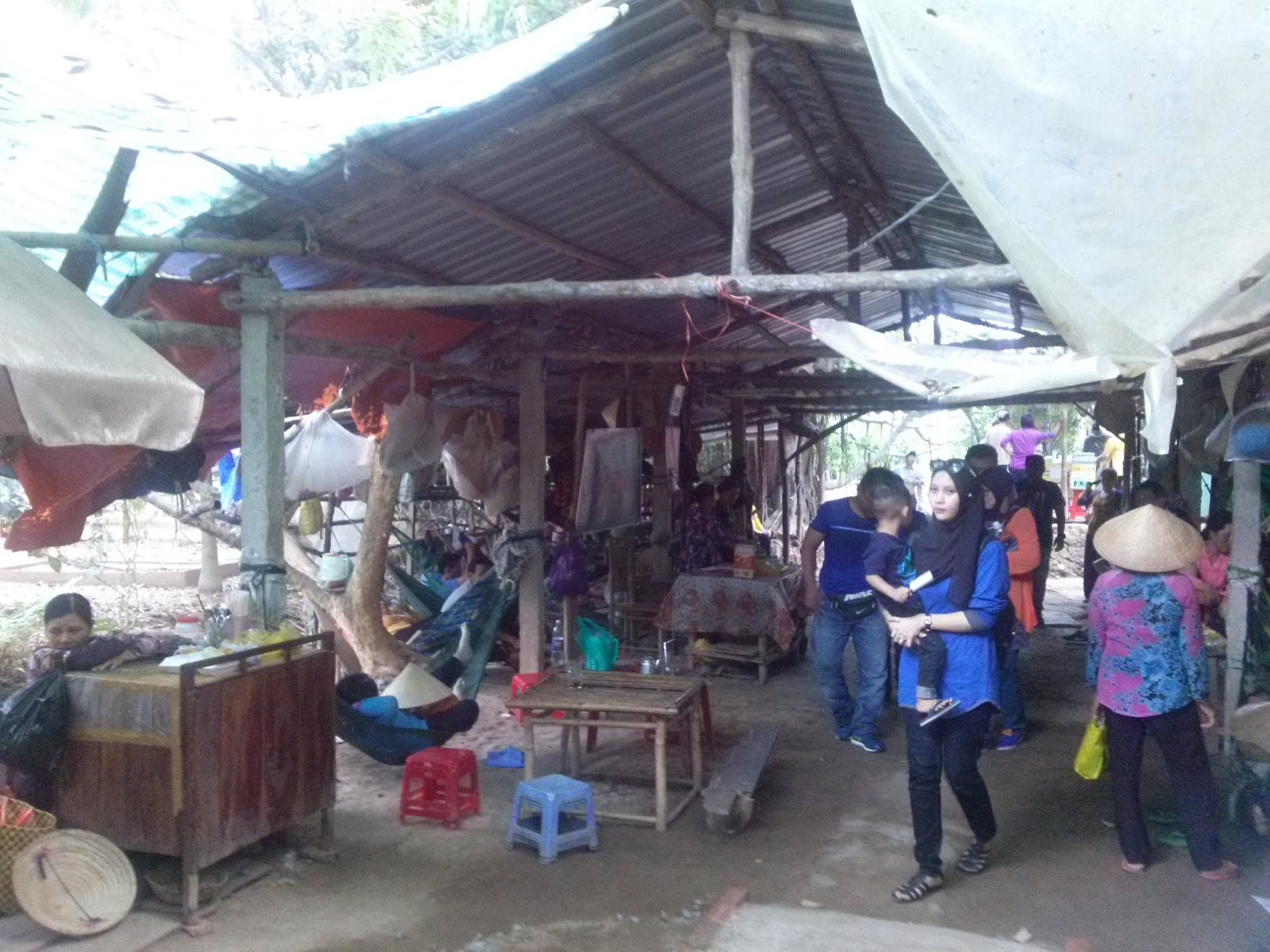After the nap it was time to go back to the dock and board the river boat, towards new adventures. We visited another island to drink some honey tea. At the tea house it was possible to get photographed with a python, so I had the snake on my shoulders. Tough luck, the photographer held my phone so that the flip cover fell to cover the camera, so there's no photo and no one will ever believe that I had the snake in my hands.